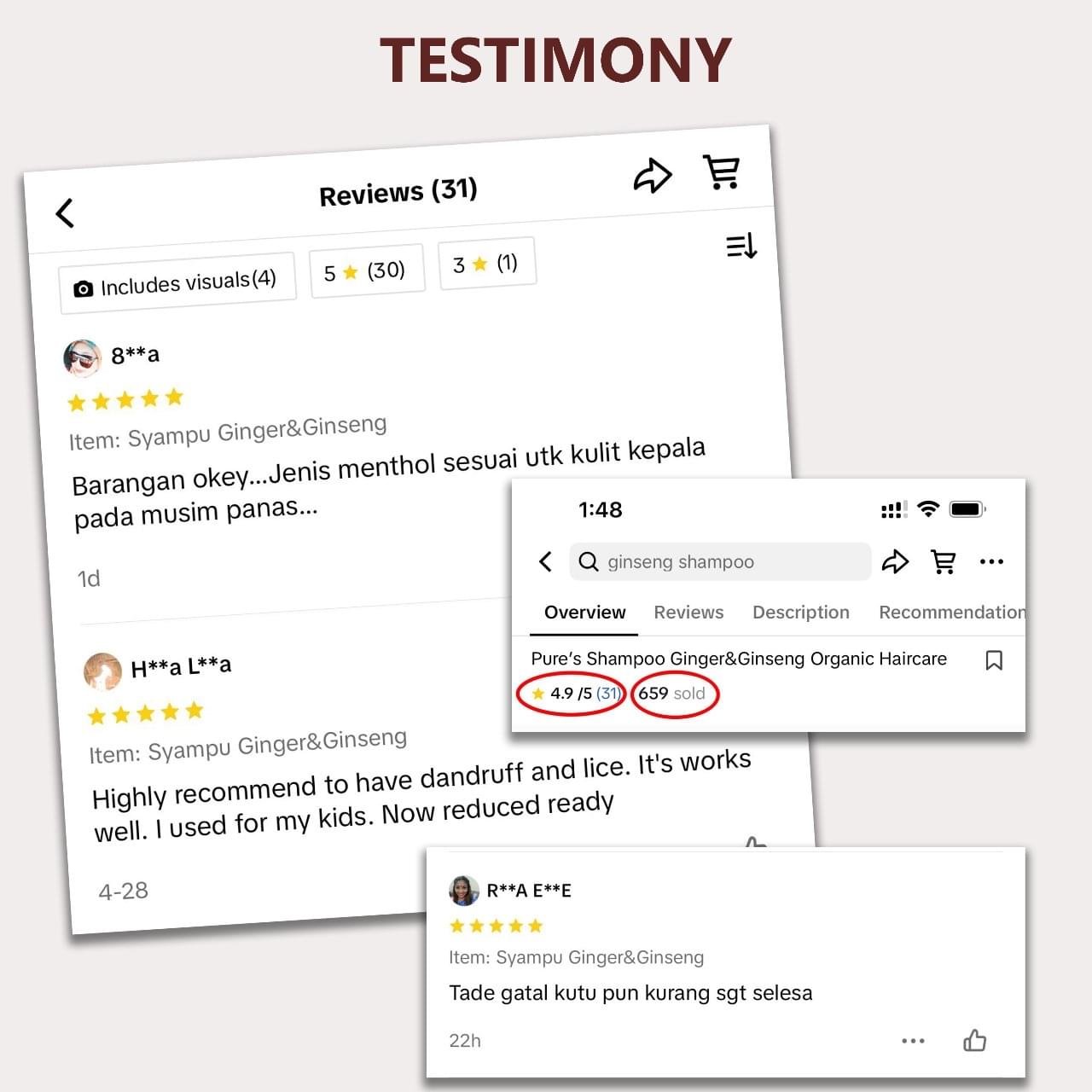 Pure’s Shampoo Ginger&Ginseng Organic Haircare Hair Conditioner Koko Rambut Syampu
